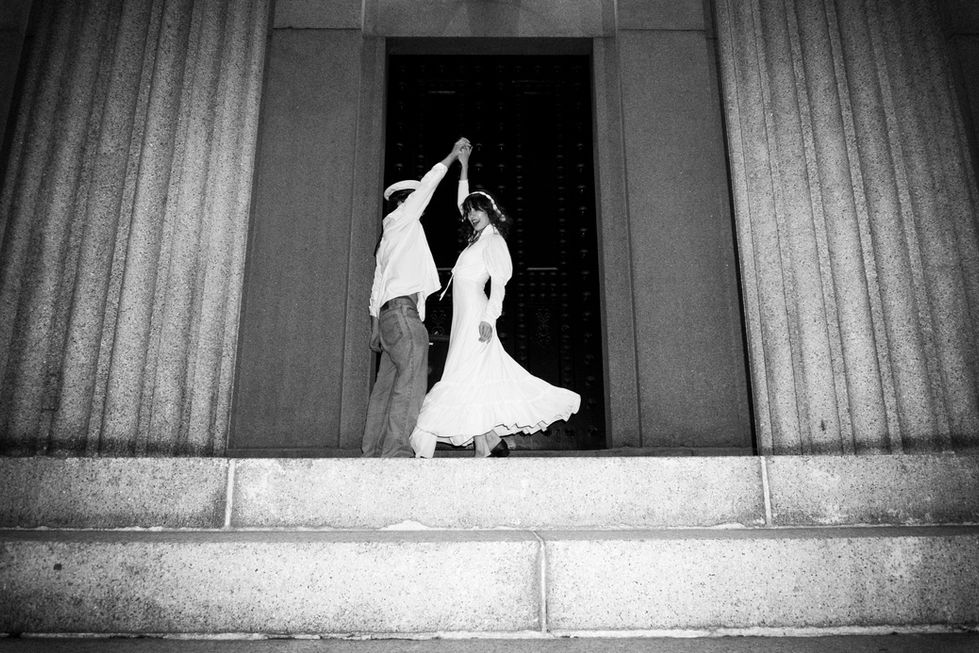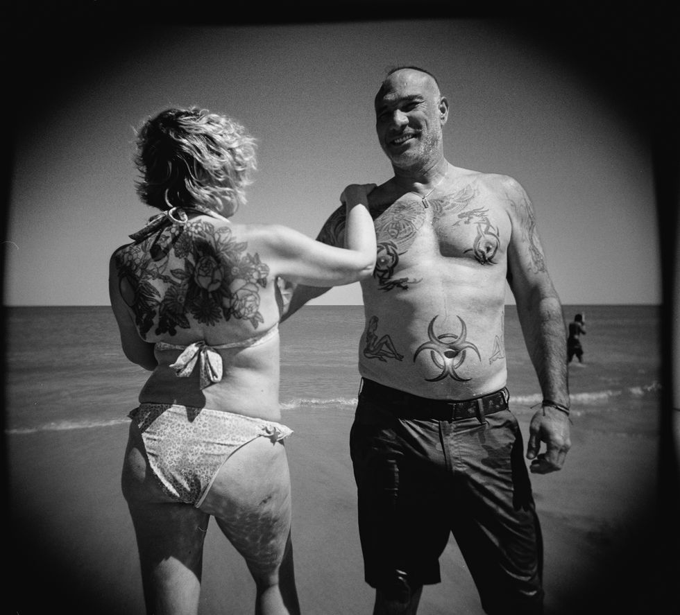 Shaking hands with strangers.